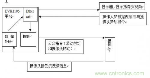 硬件平臺(tái)選用及資源配置:?jiǎn)纹瑱C(jī)平臺(tái)選用EVK1105平臺(tái),攝像頭,云臺(tái),熱釋電,LED射燈