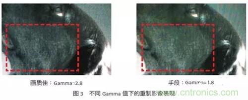 如果不采用提高LED順向電流的方式來掩蓋上述的缺點,另一種手段就是調(diào)整小點間距LED顯示屏的gamma曲線,灰階的亮度對于正確的影像重制是非常重要,因為在視訊源中亮度包含了大部份畫面數(shù)據(jù)。如圖3,右邊的圖像gamma值較小,代表中間色調(diào)的亮度太高,因此,整體畫面刷白又缺少深度,圖像上的細節(jié)損失不少,相較于左圖,右圖中的狗毛沒有那么有層次。