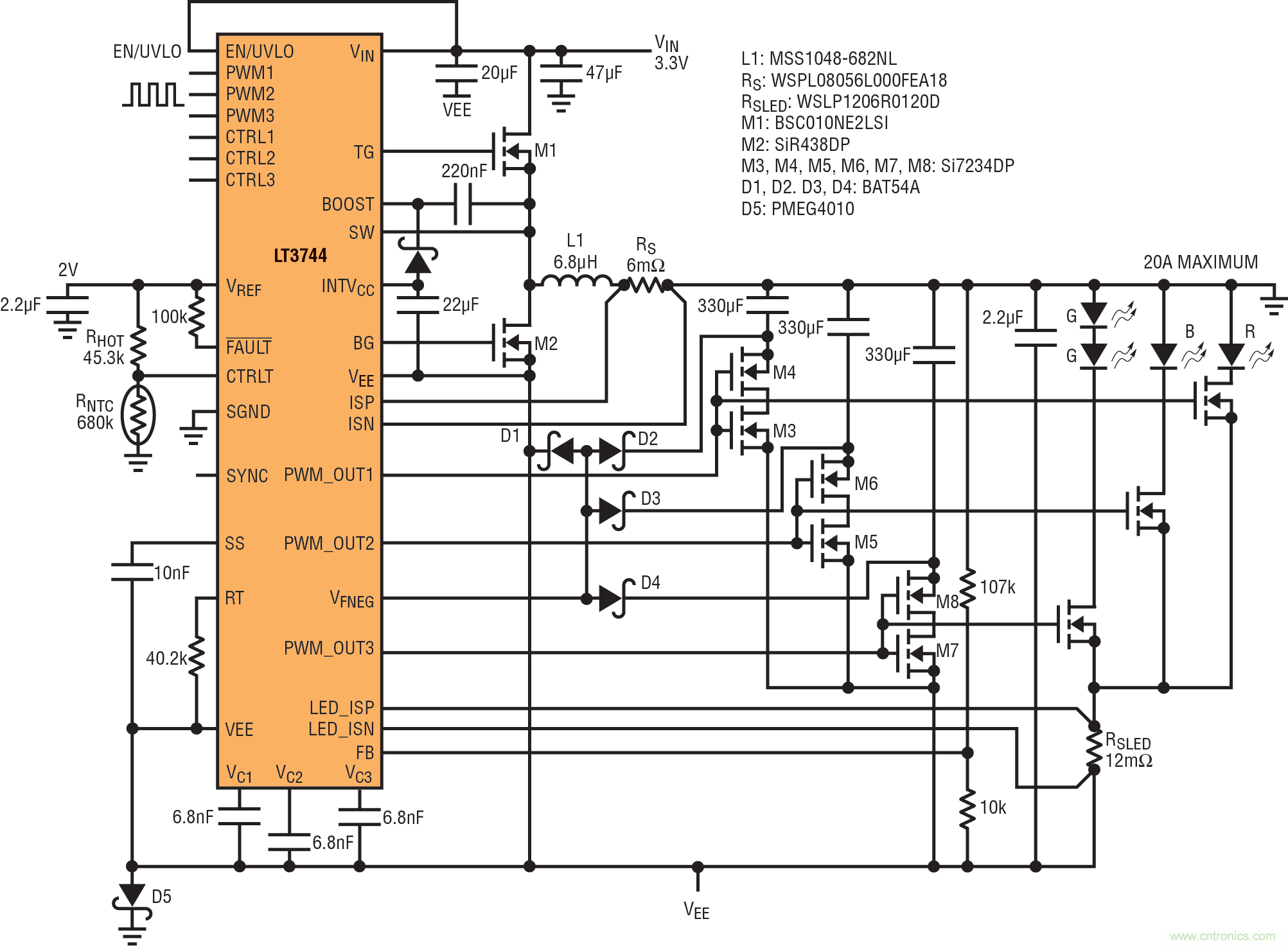 圖 8:一款 57A/324W 雙 LED 驅(qū)動器