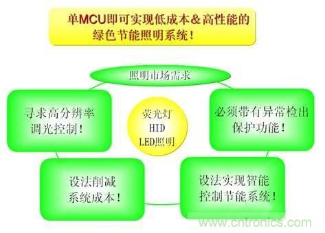越來越多的照明控制方案出現(xiàn)在現(xiàn)在的照明工業(yè)中,因此電源的設(shè)計、燈的驅(qū)動電路、安全保護(hù)、管理接口等各方面都變得愈加靈活。目前,照明技術(shù)主要包括主流的熒光燈、LED燈和HID技術(shù)等,其廣泛應(yīng)用使電源驅(qū)動的拓?fù)浣Y(jié)構(gòu)差異非常大,從常見的Flyback、Buck、Boost以及延伸出來的其他結(jié)構(gòu)都在被大量使用,產(chǎn)品設(shè)計是否采用先進(jìn)的數(shù)字節(jié)能控制設(shè)計,是否支持flyback、Buck、Boost等靈活的拓?fù)浣Y(jié)構(gòu)應(yīng)用,研發(fā)周期和投放市場時間的長短將決定產(chǎn)品的成敗,然而傳統(tǒng)的照明方案往往是采用專用器件來實現(xiàn)的,難以滿足快速發(fā)展的需求。