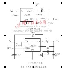 圖1為二款不同功能的開關(guān)型DC/DC轉(zhuǎn)換電路。它們具有轉(zhuǎn)換效率高、重量輕,既可以升壓,又可以降壓,輸出功率大等特點(diǎn)。由于其轉(zhuǎn)換效率高,電路中元器件的發(fā)熱量相對較小。由于電路處于較高頻率的開關(guān)工作狀態(tài),只需采用小容量、小體積的濾波電容即可見效。對輸入源電壓波動的容裕范圍比較寬。