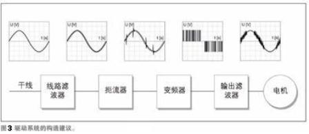 半導(dǎo)體元件的高頻開關(guān)會(huì)產(chǎn)生諧波、整流中斷和瞬態(tài)電壓峰值。它們給電力網(wǎng)絡(luò)帶來負(fù)面影響。除了相關(guān)EMC標(biāo)準(zhǔn)以外,電力主管部門還會(huì)施行進(jìn)一步的指令,把對(duì)電源網(wǎng)絡(luò)的干擾減弱到可容忍的程度。扼流器和線路濾波器可用于減弱干擾。除了線路端EMC保護(hù)以外,對(duì)變頻器輸出端也通常采用保護(hù)措施。目標(biāo)提高效率、延長工作壽命、實(shí)現(xiàn)高效布線。