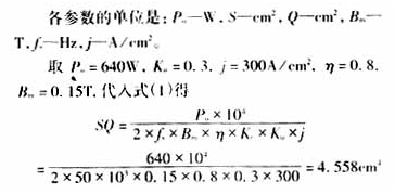 計(jì)算并確定磁芯型號(hào):磁芯的幾何截面積S和磁芯的窗口面積Q與輸出功率Po存在一定的函數(shù)關(guān)系。對(duì)于半橋變換器,當(dāng)脈沖波形近似為方波時(shí)為