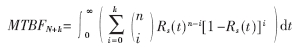 電源系統(tǒng)按N+K方式設計的平均故障間隔時間MTBFN+k為: