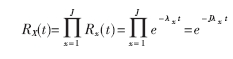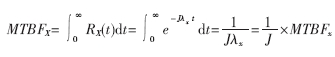 組合電源系統(tǒng)蓄電池組的可靠性計算條件是蓄電池的故障是相互影響的。任何一只蓄電池故障表現(xiàn)為蓄電池組故障。設蓄電池的數(shù)量為J,每只蓄電池的可靠度為Rx(t),平均故障間隔時間為MTBFx, J只蓄電池串聯(lián)后的可靠度為RX(t),則有