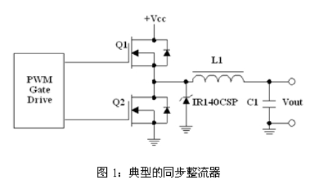 圖1示出了由一個(gè)高側(cè)MOSFET(Q1)和低側(cè)MOSFET(Q2)組成的典型同步整流器,為了實(shí)現(xiàn)最佳的同步整流器設(shè)計(jì),這兩個(gè)MOSFET需要具備不同的特性。一般來(lái)說(shuō),您可以通過(guò)搜尋一個(gè)具有最低Qswitch×RDS(ON)性能因數(shù)的器件來(lái)選擇最佳的Q1 MOSFET。Qswitch被定義為柵-源極電荷的后柵極臨限部分與柵-漏極電荷之和(Qgs2 + Qgd)。相比之下,最佳的Q2 MOSFET必須擁有非常低的RDS(ON)以及良好的Cdv/dt抗干擾。由于Q2的漏極與轉(zhuǎn)換器的開(kāi)關(guān)節(jié)點(diǎn)相連,因此,它承受著地電位與Vin之間的瞬變電壓。隨著Q1的導(dǎo)通和關(guān)斷,漏極電壓會(huì)以dV/dt的速率進(jìn)行變化,該變化將被容性耦合至Q2的柵極,并能夠引起一個(gè)足以使MOSFET導(dǎo)通的電壓尖峰,從而產(chǎn)生擊穿電流。因此,必須最大限度地減小Qgd/ Qgs1(柵-漏極電荷/臨限前柵-源極電荷)之比率以降低Cdv/dt導(dǎo)通電位。