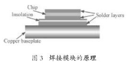 將一個(gè)硅片裝配和連接到一個(gè)器件上有不同的方法。在許多模塊中,硅片被焊在兩側(cè)(陽(yáng)極和陰極側(cè)),并且是單面冷卻。常用的焊接模塊的原理如圖3所示。