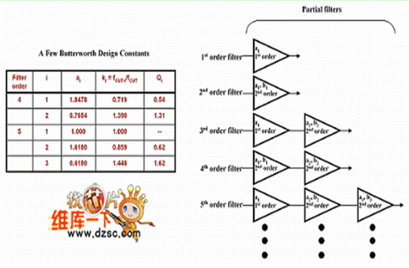 圖1通過(guò)級(jí)聯(lián)一階和/或二階濾波器您可以構(gòu)建一款多階模擬濾波器。您可以利用濾波器系數(shù)計(jì)算出放大器所需的帶寬