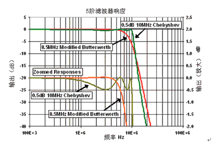 使用有源濾波器時要牢記,濾波器的Q越高,放大器的帶寬就越高。如果使用貝塞爾或巴特沃思濾波器乃至更高階的版本,我們要把各級的Q保持相對較低。設計支持橢圓或契比雪夫響應的濾波器,其Q值較高,需要較高帶寬的放大器才能適當實施。否則,放大器對濾波器就會造成影響,從而改變我們所需的響應。我們可通過修改組件值來實現上述目標,不過放大器之間的差異會因此變得更大。
