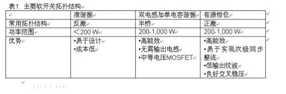 要提高主轉(zhuǎn)換器能效可以采用以下幾種方法。一是通過降低導(dǎo)通阻抗(開關(guān)損耗較高)和/或減小初級峰值電流和均方根電流來降低初級導(dǎo)通損耗;二是考慮采用軟開關(guān)技術(shù)降低開關(guān)損耗;三是通過減少整流器壓降(使用低正向壓降二極管或FET整流器)來降低次級損耗;四是采用更好的磁芯材料來降低磁芯損耗。表1列出了主要軟開關(guān)的拓?fù)浣Y(jié)構(gòu),可供設(shè)計時參考。