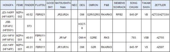 以繼電器為例,廈門(mén)宏發(fā)的繼電器產(chǎn)品能對(duì)富士通、歐姆龍、松下電工、松川等國(guó)際公司的產(chǎn)品進(jìn)行替代。具體可見(jiàn)下圖,如廈門(mén)宏發(fā)的JZX-140FF系列產(chǎn)品可以替代富士通FBR621、OMRON的G2R/G2RG、P&B的RKX/RKS系列產(chǎn)品等。