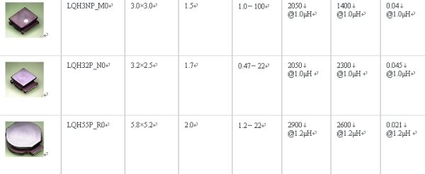 表1:功率電感LQH系列產(chǎn)品線一覽
