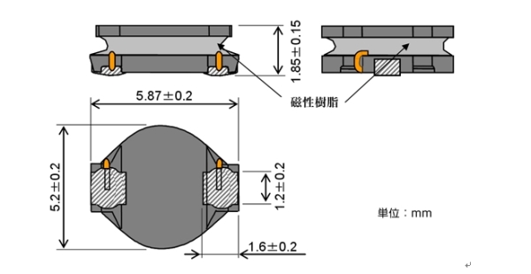 LQH55P_R0系列在卷線周圍全部涂有磁性樹脂,從而提高磁屏蔽,這樣做能夠獲得更低的直流電阻值。另外,由精密的涂層技術(shù)控制磁性樹脂的涂量,從而調(diào)節(jié)實(shí)際有效的μ并控制所需要的感值和直流偏置特性。圖5中表示了磁性樹脂涂量變化時(shí)的直流偏置特性。精密磁性樹脂涂層技術(shù)使較大電流時(shí)可維持最低限度的感值,以及減少初期感值低下等直流偏置特性可以得到自由控制。