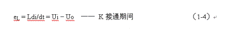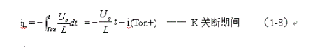 式中–Uo前的負(fù)號,表示K關(guān)斷期間電感產(chǎn)生電動勢的方向與K接通期間電感產(chǎn)生電動勢的方向正好相反。對(1-7)式進(jìn)行積分得: