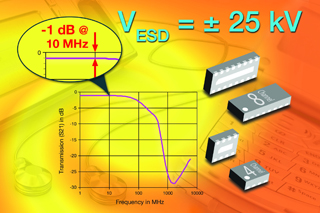 新款VEMI濾波器陣列的厚度只有0.6mm,可節(jié)省電路板空間,并為便攜式游戲機、PDA、智能手機和其他接收800MHz~2400MHz頻段RF信號的系統(tǒng)中的嵌入式攝像頭和LCD提供EMI濾波和ESD保護功能。VEMI陣列中的低通濾波器使低頻信號在通過時的衰減非常低,而將移動通信系統(tǒng)的載波頻率這樣的高頻信號短路到地。