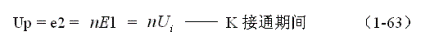 上式中,Up為正激式開關電源變壓器次級輸出電壓的幅值(圖1-16-b中正半周);Ui為正激式開關電源變壓器初級線圈N1繞組的輸入電壓;n為變壓比,即:開關變壓器次級線圈輸出電壓與初級線圈輸入電壓之比,n也可以看成是開關變壓器次級線圈N2繞組與初級線圈N1繞組的匝數比,即:n = N2/N1。