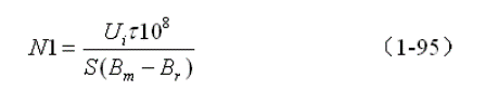 (1-95)式就是計(jì)算單激式開關(guān)電源變壓器初級線圈N1繞組匝數(shù)的公式。式中,N1為變壓器初級線圈N1繞組的最少匝數(shù),S為變壓器鐵心的導(dǎo)磁面積(單位:平方厘米),Bm為變壓器鐵心的最大磁感應(yīng)強(qiáng)度(單位:高斯),Br為變壓器鐵心的剩余磁感應(yīng)強(qiáng)度(單位:高斯),Br一般簡稱剩磁,τ = Ton,為控制開關(guān)的接通時間,簡稱脈沖寬度,或電源開關(guān)管導(dǎo)通時間的寬度(單位:秒),一般τ取值時要預(yù)留20%以上的余量,Ui為工電壓,單位為伏。式中的指數(shù)是統(tǒng)一單位用的,選用不同單位,指數(shù)的值也不一樣,這里選用CGS單位制,即:長度為厘米(cm),磁感應(yīng)強(qiáng)度為高斯(Gs),磁通單位為麥克斯韋(Mx)。
