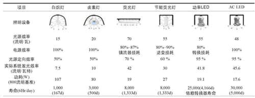 表1 交流LED與現(xiàn)有的照明燈具性能比較