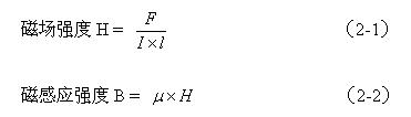 (2-1)式中磁場強度H的單位為奧斯特(Oe),力F的單位為牛頓(N),電流I的單位為安培(A),導(dǎo)線長度的單位為米(m)。(2-2)式中,磁感應(yīng)強度B的單位為特斯拉(T), 為導(dǎo)磁率,單位為亨/米(H/m),在真空中的導(dǎo)磁率記為 , = 1。由于特斯拉的單位太大,人們經(jīng)常使用高斯(Gs)作為磁感應(yīng)強度B的單位。1特斯拉等于10000高(1T=104Gs)。
