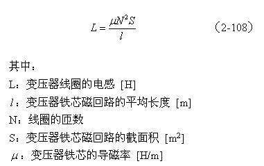 【說明】上式是用來計算變壓器線圈電感的計算公式。由于變壓器鐵芯的磁回路基本是封閉的,變壓器鐵芯的平均導(dǎo)磁率相對來說比較大。鐵芯的導(dǎo)磁率一般在產(chǎn)品技術(shù)手冊中都會給出,但由于大多數(shù)開關(guān)電源變壓器的鐵芯都留有氣隙,留有氣隙的磁回路會出現(xiàn)磁場強度以及磁感應(yīng)強度分布不均勻,因此,(2-108)式中的導(dǎo)磁率只能使用平均導(dǎo)磁率,技術(shù)手冊中的數(shù)據(jù)不能直接使用。