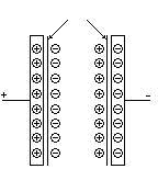 圖一為超級(jí)電容器的模型,超級(jí)電容器中,多孔化電極采用活性炭粉和活性炭和活性炭纖維,電解液采用有機(jī)電解質(zhì),如丙烯碳酸脂(propylene carbonate)或高氯酸四乙氨(tetraetry lanmmonium perchlorate)。工作時(shí),在可極化電極和電解質(zhì)溶液之間界面上形成的雙電層中聚集的電容量c由下式確定: