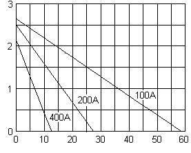 由于等效串聯(lián)電阻(ESR)比普通電容器大,因而充放電時(shí)ESR產(chǎn)生的電壓降不可忽略,如2.7V/5 000F超級(jí)電容器的ESR為:0.4mΩ,在100A電流放電時(shí)的ESR電壓降為40mV占額定電壓的1.5%,在950A電流放電時(shí)的ESR電壓降為380mV占額定電壓的14%,表明在額定電流下放電容量將為額定容量減小88.5%,這一特性將在圖3中看到。