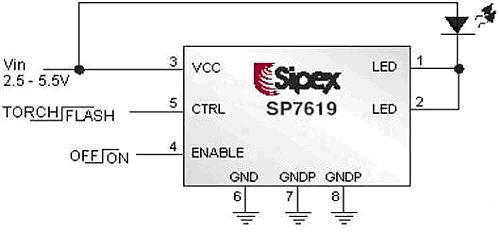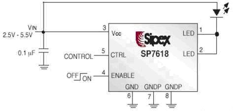 另外,隨著LED技術(shù)的改進(jìn),F(xiàn)lash LED的工作電壓(Vf)也會(huì)越來(lái)越低,Vf值在3.4V以下的Flash LED很快會(huì)推出,而目前手機(jī)鋰電池的關(guān)機(jī)電壓一般在3.5V,所以日后在閃光燈的解決方案中將不再需要升壓方式,因此Sipex公司推出一批線性的控制 器件,如SP7618和SP7619/SP7619A。