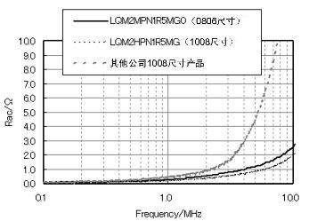 如同圖4中顯示的Rac特性,LQM系列產(chǎn)品能夠充分抑制Rac。同時(shí),圖2的電流-感值偏執(zhí)特性中顯示,它在電流通電時(shí)也能確保高感值,擁有良好的電力變換效率特性。這些性能能夠?qū)崿F(xiàn)手機(jī)在待機(jī)狀態(tài)下的高電力變換效率,對(duì)延長(zhǎng)電池壽命做出貢獻(xiàn)。