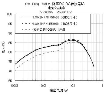 另一方面,PWM模式指相當(dāng)于通話狀態(tài)的高電流負(fù)荷狀態(tài),此模式與電感的Rdc特性(直流阻抗)有關(guān),具有低Rdc性能的LQM系列在此領(lǐng)域具有良好的電源轉(zhuǎn)換效率。