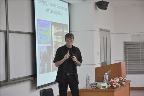 在課堂上,美國加州照明技術(shù)中心主任Michael Siminovitch教授講授的課程是《LED室內(nèi)照明設(shè)計》。他認(rèn)為住宅照明是LED最大的增長機會之一,加州州長07年簽署的法案規(guī)定2018年室內(nèi)住宅照明耗電必須比2007年下降50%以上。他舉LED廚房照明為例,采用白熾燈的話要700瓦,改為LED燈具后,功率可以降到100-150瓦。他指出1200萬家庭的廚房每家功率節(jié)省192瓦,那么總共可以節(jié)省2.33GW,相當(dāng)于加州最大核電站的功率。他從眩光、顏色、成本、耐用性和效率等方面講述了LED在室內(nèi)照明的應(yīng)用潛力。演講中他列舉了很多應(yīng)用案例,包括零售店、辦公室、車庫等場所。