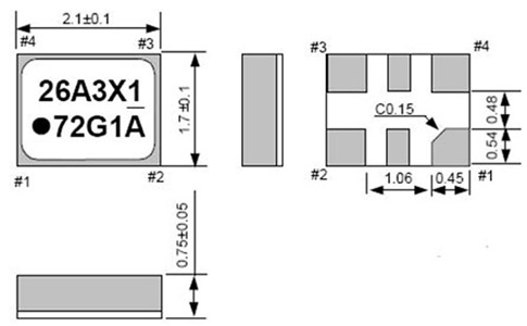 圖1 2mm×1.6mm 24M~54MHz石英晶體