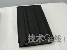 動力用EVB-101是將84個單元按14串聯(lián)×6并聯(lián)配置而成的。其特點是最大輸出功率高,最高時為5.2kW,連續(xù)供電時為1.5kW。單元是采用電池容量為2050mAh的電動助力自行車用高功率單元“UR 18650E”制成的。另外,通過比DCB-101增加串聯(lián)配置的比例,提高了輸出功率。模塊電壓為50.4V(42.0~57.4V),電池容量為10.8Ah,電容量為544Wh。雨堤徹介紹稱,比如,配備于電動踏板摩托車時的持續(xù)行駛距離“因條件而異,不過配備一個單元時,能夠行駛10~15km左右。配備2~3個單元時,能夠行駛30~50km”。模塊的外形尺寸為366mm×213mm×66mm,重約7kg。