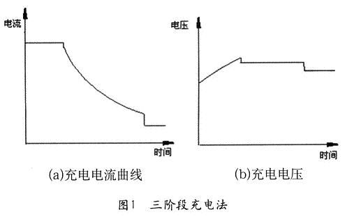三階段充電法是兩階段等流充電法和恒定等壓充電法相結(jié)合的方式。充電開始和結(jié)束時(shí)采用恒定電流,中間階段為恒定電壓充電。蓄電池在充電初期用較大的電流,經(jīng)過一段時(shí)間改為恒定電壓充電,當(dāng)電流衰減到預(yù)定值時(shí),由第二階段轉(zhuǎn)到第三階段。采用三階段充電法的優(yōu)點(diǎn)是:避免了恒定電壓充電法開始充電電流過大,而后期電流又過小的情況,比二階段等流充電在中間階段更接近充電電流接受率曲線。這種充電法減少了充電出氣量,充電又徹底,延長了蓄電池使用壽命。三階段充電法充電電流和充電電壓變化曲線如圖1所示。[page]