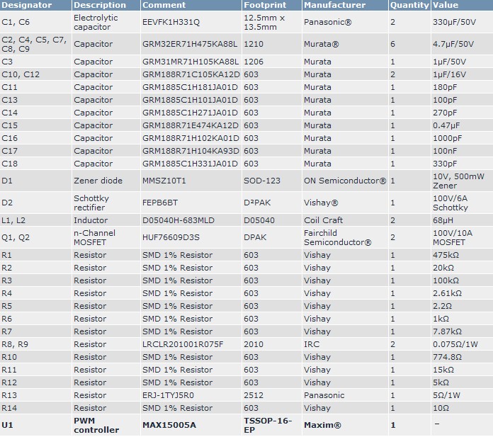 表1列出了參考設(shè)計的材料清單(BOM)。