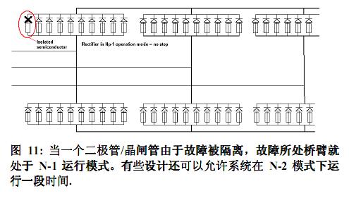 整流器中的半導(dǎo)體和快熔的配合需要仔細(xì)考慮。一個考慮周全的熔斷器保護(hù)方案基本不存在半導(dǎo)體爆炸的可能。與之相反,不當(dāng)?shù)南到y(tǒng)設(shè)計(jì)將會導(dǎo)致燃弧和起火、損壞整個整流器單元、以及操作人員的人身傷害。按照N-1模式設(shè)計(jì)系統(tǒng)可以保護(hù)用戶免受生產(chǎn)線部分或全部停頓帶來的損失。因此,在大功率整流應(yīng)用中,都是基于N-1模式的連續(xù)滿載運(yùn)行。在某些應(yīng)用中,客戶甚至要求按N-2-或更多來進(jìn)行設(shè)計(jì),這些都要加以考慮。如果整流器在N-x模式下運(yùn)行了過長的時間,而整流器本不是按照N-x模式來設(shè)計(jì)的,那么結(jié)果就是故障熔斷器所在橋臂的所有其他熔斷器也受到了傷害。