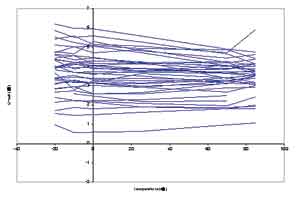 為了在各種溫度變化下獲得更好的性能,愛特梅爾增加了一個額外的基準(zhǔn)電壓校準(zhǔn)機(jī)制,用以調(diào)節(jié)帶隙基準(zhǔn)源的溫度系數(shù)。這個校準(zhǔn)步驟將調(diào)節(jié)曲率的形狀和位置,并顯著改善隨溫度變化的穩(wěn)定性,如圖4所示,在-20~+85℃溫度范圍內(nèi)的最大變化是0.5%。注意第二個校準(zhǔn)步驟可以檢測和顯示出具有截然不同的曲線形狀的離群點(diǎn)。