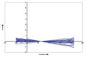 帶隙基準(zhǔn)源中的電流級存在一定的生產(chǎn)差異(productionvariation),使得25℃時的基準(zhǔn)額定值、曲率形狀和曲線最平坦部分的位置都會發(fā)生各種變化,因此需要進(jìn)行工廠校準(zhǔn),以盡量減小這種變化的影響,圖3所示為一個未校準(zhǔn)基準(zhǔn)源帶來的變化實(shí)例。在-20~+85℃的溫度范圍內(nèi),最高差異為-0.9~0.20%。而圖3則顯示有兩個離群點(diǎn)的曲線跟大多數(shù)其他器件的曲線有相當(dāng)大的差異。