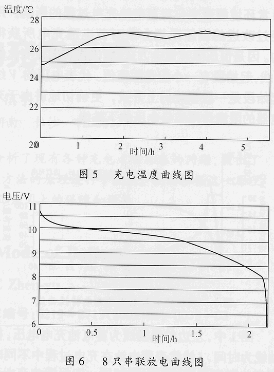 為進一步說明,特提供一組用我們設(shè)計的充電器,對市場上某品牌鎳氫電池(Ni-HM)5號1300mA•h,8只串聯(lián)充放電結(jié)果的打印曲線(環(huán)境溫度為25℃)如圖3~圖6所示。從這一組電池的充電電流接受曲線、充電電壓上升曲線、電池溫度變化曲線、0.5C恒流放電曲線可以看到,整個充電過程,電池溫升很小,不超過3~4℃,充滿電的時間,從標(biāo)準(zhǔn)的14~15h,縮短為3~4.5h。由于整個充電過程電池溫升很小,所以,不需要進行任何的人為干預(yù)。信息請登陸:輸配電設(shè)備網(wǎng)