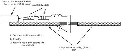測試電感性能的最有效方法就是將被測試電感放置在最終開關(guān)電源電路上,然后對此電路的效率進行測量。但是,這種測試方法需要有最終電路,不易采用?,F(xiàn)在,有一種相對簡單的測試方法,可以在設(shè)計開關(guān)電源前對電感的磁芯損耗進行測試(在其設(shè)定的開關(guān)頻點上)。首先,將磁芯串連放置在低損耗電容介質(zhì)上(比如鍍銀云母)。然后,用一系列共振模驅(qū)動。其中介質(zhì)的電容值需要與被測電感的開關(guān)頻率一致。最后采用網(wǎng)絡(luò)分析儀來完成整個測試過程(信號發(fā)生器加上一個射頻伏特計或者功率計也可以完成測試)。測試設(shè)備的結(jié)構(gòu)如圖2所示