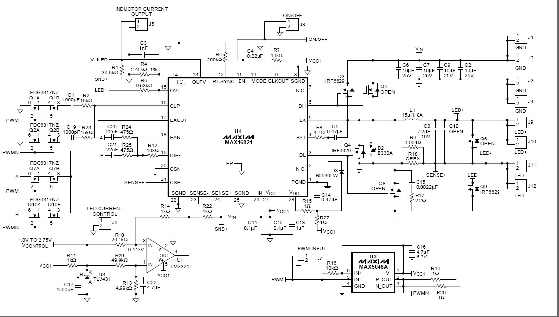 - 使用MAX16821 PWM HB LED驅(qū)動器實現(xiàn)降壓轉(zhuǎn)換