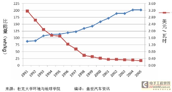 1998-2005年全球鋰電池的年度價(jià)格平均下降了9.9%,其中2002-2005年的價(jià)格下降了5.4%。
