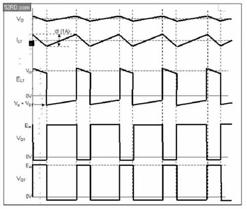 圖2采用降壓拓?fù)浣Y(jié)構(gòu)的開關(guān)電源的開關(guān)動(dòng)作波形圖