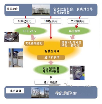 美國在構(gòu)建智能電網(wǎng)的同時(shí),還將一舉建設(shè)充電基礎(chǔ)設(shè)施。許多企業(yè)為獲得這一市場而參與了競爭,他們的目標(biāo)是,以電力資訊為核心推出新的服務(wù),以成為汽車和家電產(chǎn)業(yè)的主角為目標(biāo)。