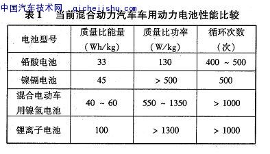 目前,世界上已開發(fā)的主要動力蓄電池性能如表1所示。