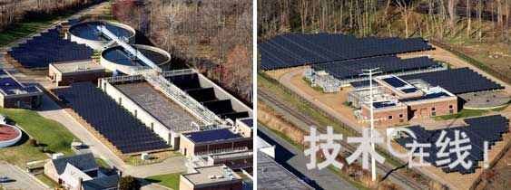 京瓷產(chǎn)品在美國采用的實例 照片中的是新澤西州莫里斯敦(Morristown)的廢水處理設施。設置規(guī)模按照輸出功率計算約為511kW(太陽能電池模塊2550片),年發(fā)電量約為63萬5800kWh。數(shù)據(jù)由京瓷提供。