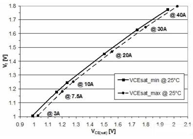圖8:室溫和不同電流條件下IHW20N120R2的飽和壓降與Vf的關(guān)系