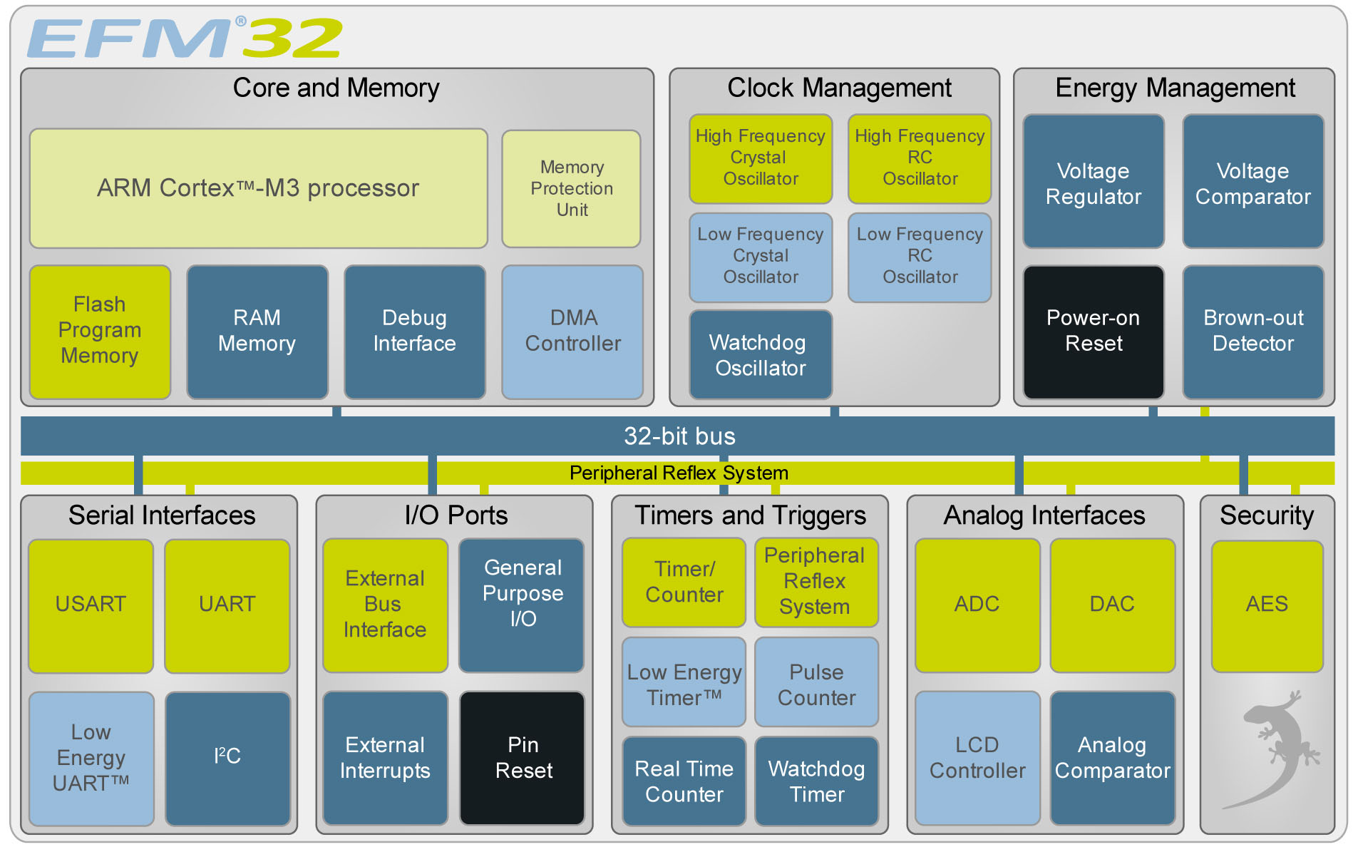 本質(zhì)上,CMOS晶體管消耗的大部分主動電流發(fā)生在切換時。通過開發(fā)先進的門控同步時鐘結(jié)構(gòu),EFM32架構(gòu)隨時保持最少的開關(guān),大大減少了不必要的晶體開關(guān)數(shù)量。這對主動電源極為有效,它通過總線架構(gòu)延伸,甚至到達執(zhí)行程序內(nèi)存的內(nèi)核。該架構(gòu)的設(shè)計很方便直接運行閃存,可通過減少訪問內(nèi)存來進一步省電。