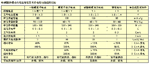 磷酸鐵鋰動(dòng)力電池主要性能列于表1。為了與其他可充電電池的相比較,也在表中列出其他種類可充電電池性能。這里要說(shuō)明的是,不同工廠生產(chǎn)的磷酸鐵鋰動(dòng)力電池在各項(xiàng)性能參數(shù)上會(huì)有一些差別;另外,有一些電池性能未列入,如電池內(nèi)阻、自放電率、充放電溫度等。