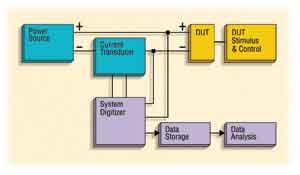 電池消耗分析中使用的電源必須獨(dú)立于電池來描述DUT。電源必須有快速的響應(yīng),以盡量減小DUT在切換模式或傳輸脈沖時(shí)所具有的快速回轉(zhuǎn)電流脈沖所造成的瞬態(tài)電壓跌落。