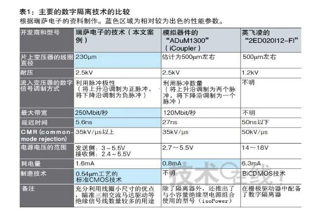 美國模擬器件(ADI)、美國芯科實驗室(Silicon Laboratories)以及德國英飛凌科技(Infineon Technologies)等已經(jīng)使采用片上變壓器的隔離器實現(xiàn)了實用化。此次技術(shù)與這些現(xiàn)有技術(shù)的不同之處在于,考慮到要集成在廉價的微控制器上,將變壓器的面積減小到了原來的1/4左右。具體情況是,通過電路技術(shù)的改進,將原來需要500μm左右的變壓器直徑降至230μm(表1)。